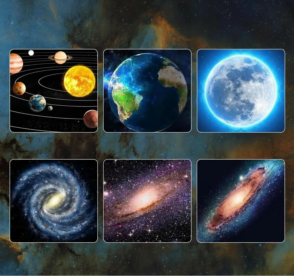 – Effets visuels : 13 disques cosmos (galaxies, lune, constellations, nébuleuses, planètes, étoiles HD)