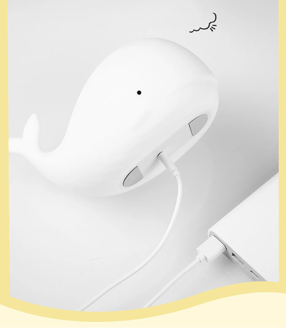 Le contrôle tactile est très simple : il suffit de tapoter légèrement le corps de la baleine pour allumer, éteindre ou changer la couleur de la lumière.