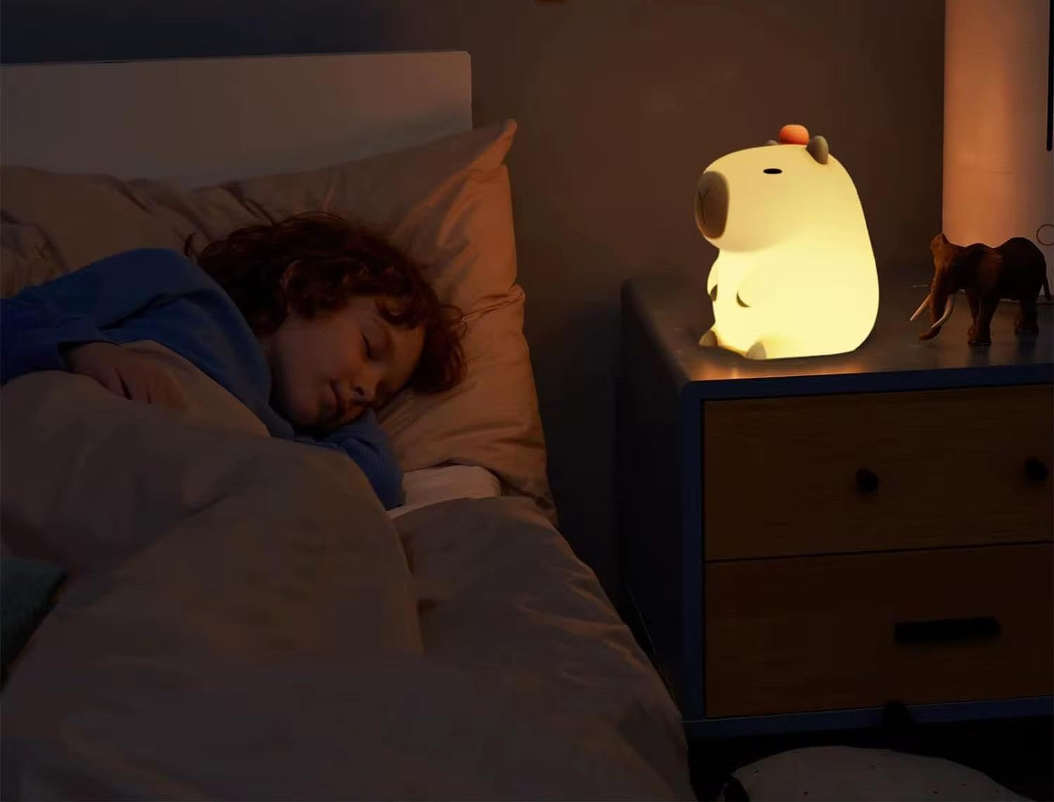 Son design en forme de castor est stable et adorable, parfait pour être posé sur une table de nuit ou un bureau sans basculer. Le contrôle tactile simplifie l’usage : un tap sur la tête du castor suffit pour allumer, régler ou éteindre.