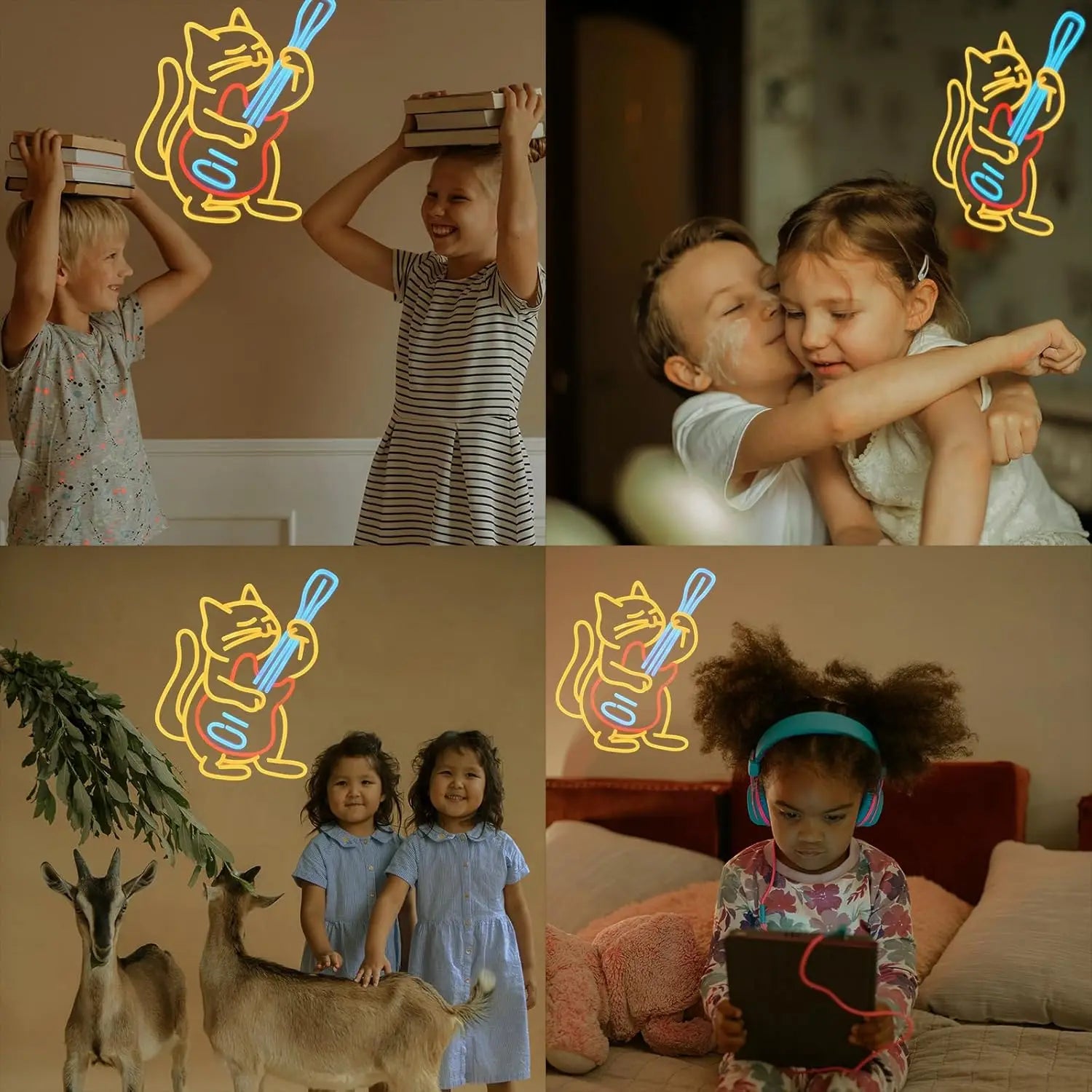 Veilleuse Chat Guitariste Néon LED – Lampe décorative murale pour chambre d’enfant, rechargeable USB
