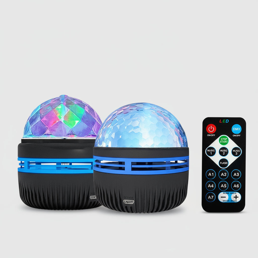 Elle propose jusqu’à 12 modes de couleurs (bleu, vert, violet, rose, blanc, multicolore) et peut combiner rotation, fondu et variation d’intensité pour créer une atmosphère magique.